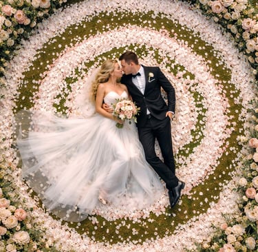 It starts with your idea — a vision of how you want your special moment to look and feel. Then we lift off. From above, angles open up that you never see from the ground. Lines become leading paths. Light becomes drama. Scale becomes powerful.